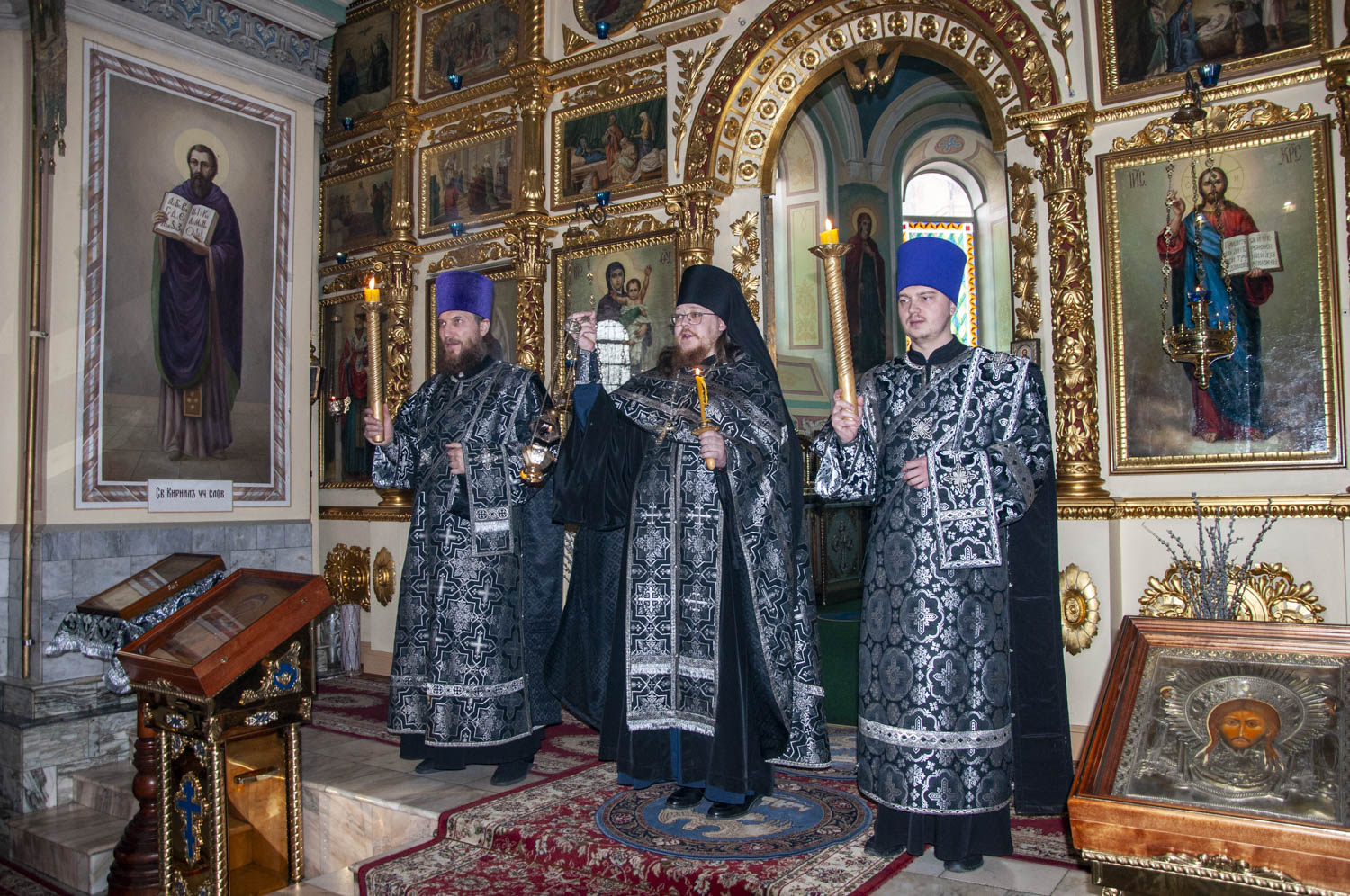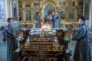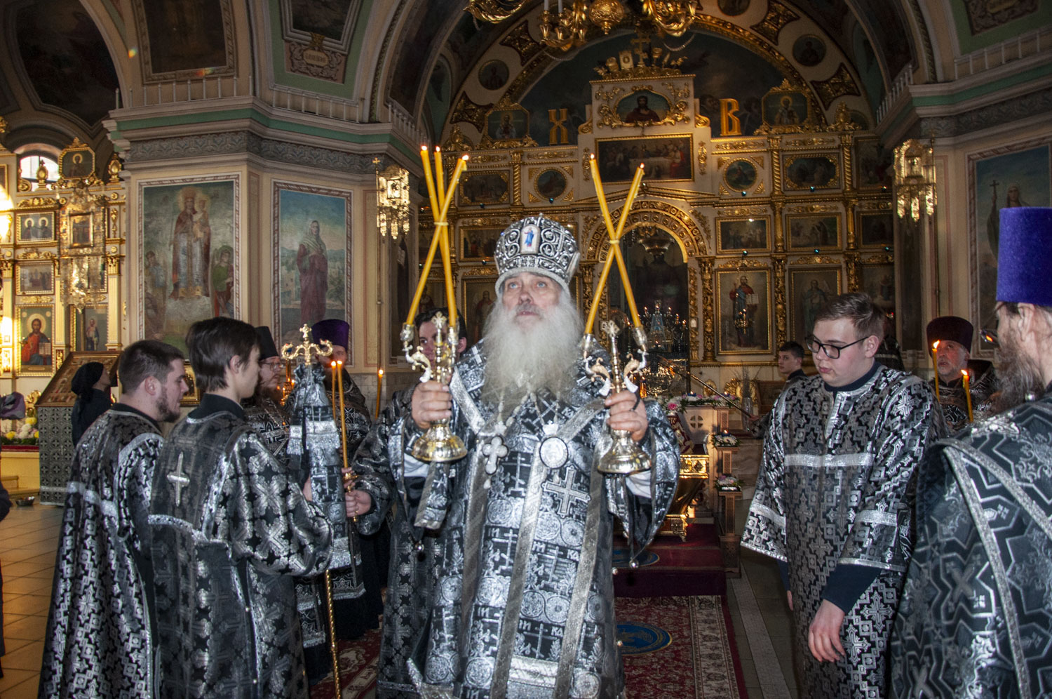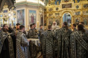 Его Высокопреосвященству сослужили клирики кафедрального собора, а также председатель информационного отдела Барнаульской епархии иеромонах Модест (Илюшин) и диакон Олег Вихлянов.