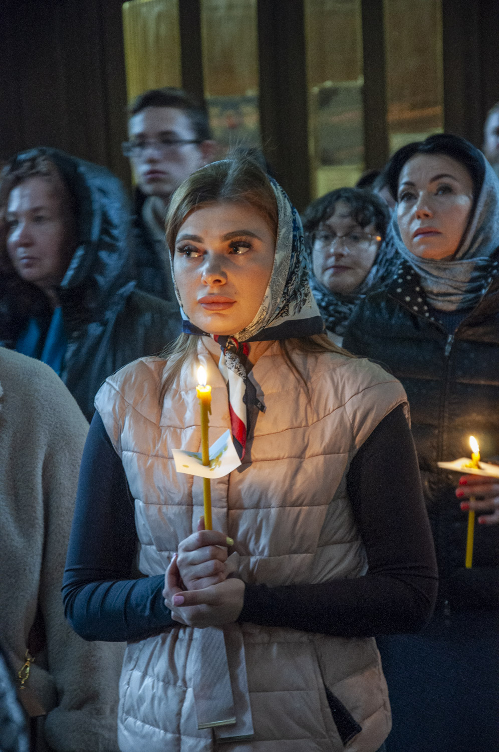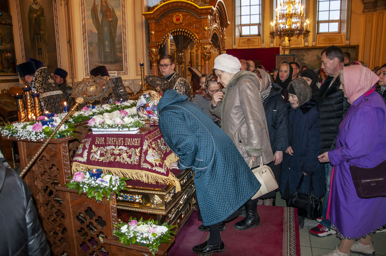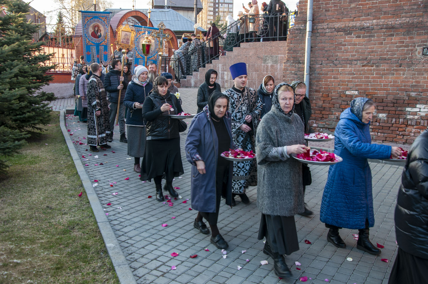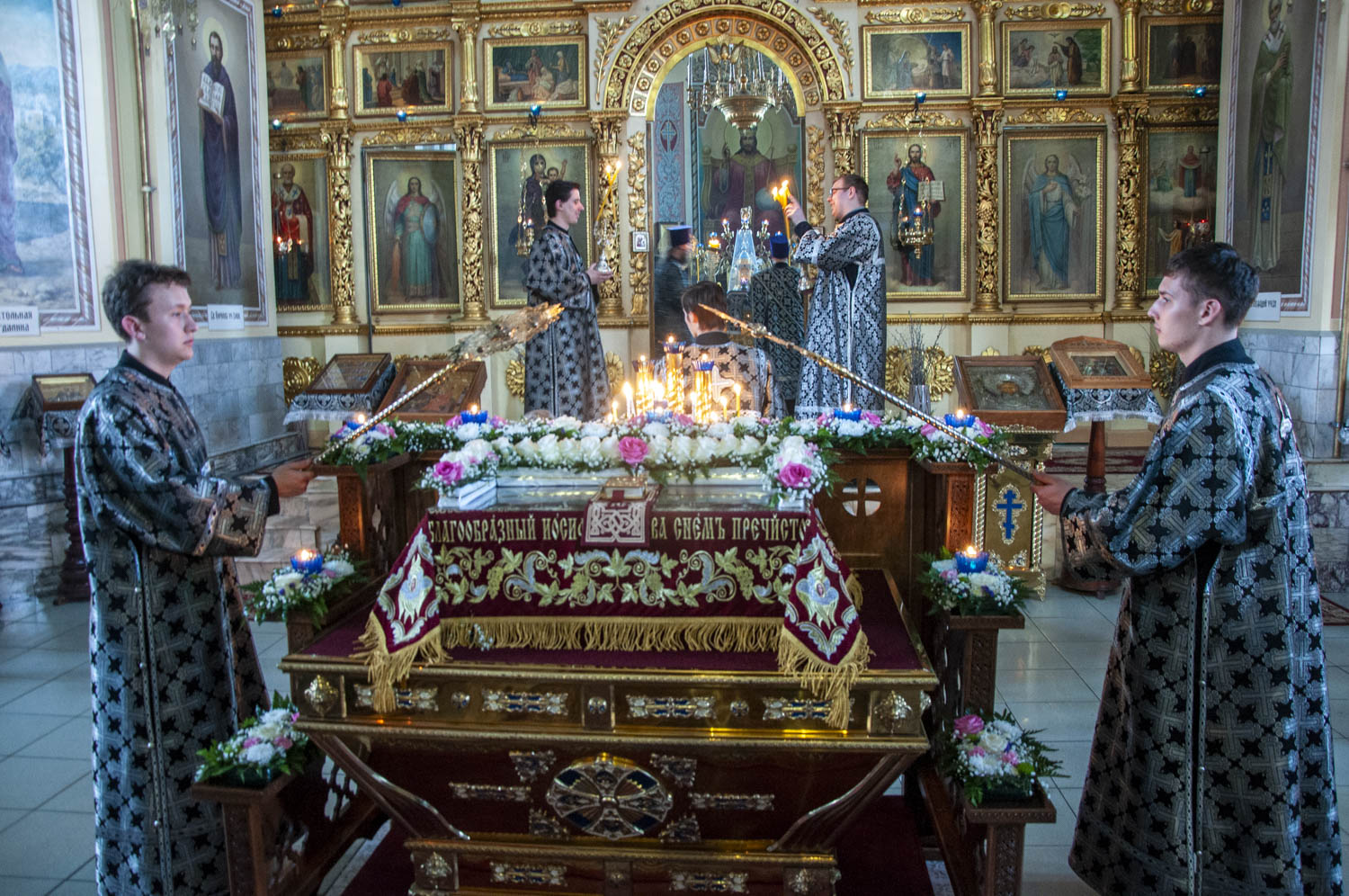 После возгласа «Слава Тебе, показавшему нам свет» было совершено троекратное каждение Плащаницы и по завершении великого славословия начался погребальный крестный ход. При пении Трисвятого погребальным напевом святая Плащаница была обнесена вокруг храма.