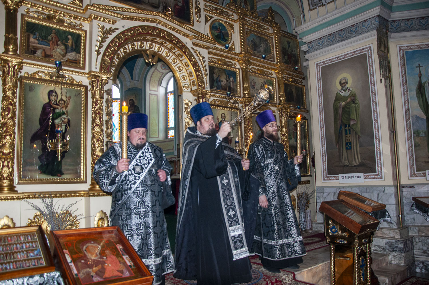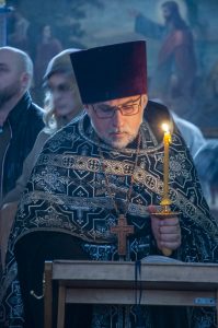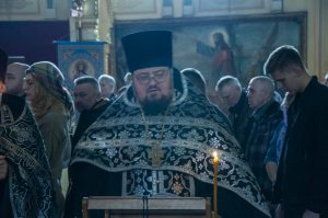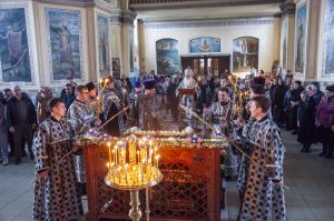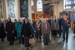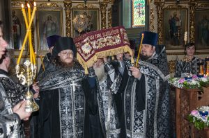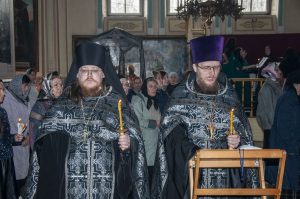 По возвращении в храм была прочитана паремия (ветхозаветное пророчество) из книги пророка Иезекииля о всеобщем воскресении мертвых, а затем – зачало из послания святого апостола Павла к Коринфянам, в котором говорилось об искупительном значении крестной смерти Господа Иисуса Христа. После апостольского чтения был пропет аллилуарий со стихами из псалтири, которые возвещают о победе Христа Спасителя над державой ада, подводят нас к преддверию праздника Пасхи: «Да воскреснет Бог и расточатся врази Его и да бежат от лица Его ненавидящии Его!»