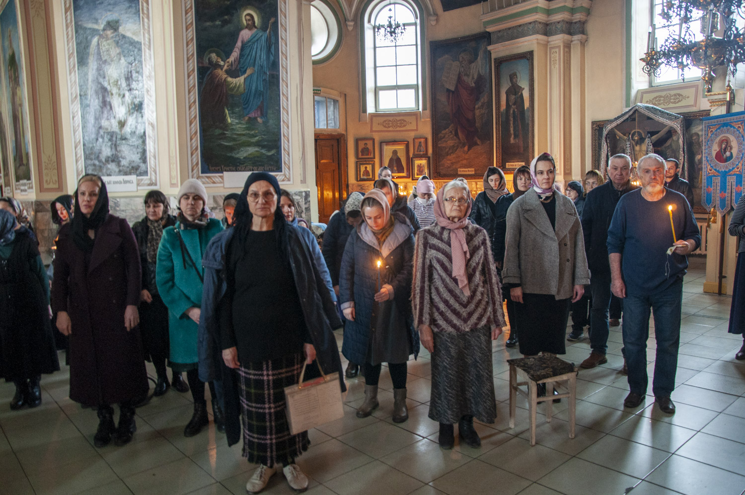 Затем архипастырь и священнослужители вернулись в алтарь и началось пение канона Великой Субботы «Волною морскою…», который, как и все молитвословия и ектении Великой Субботы, читался священнослужителями перед святой Плащаницей.