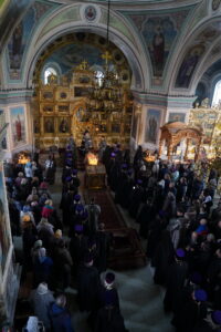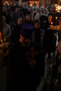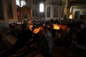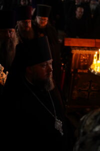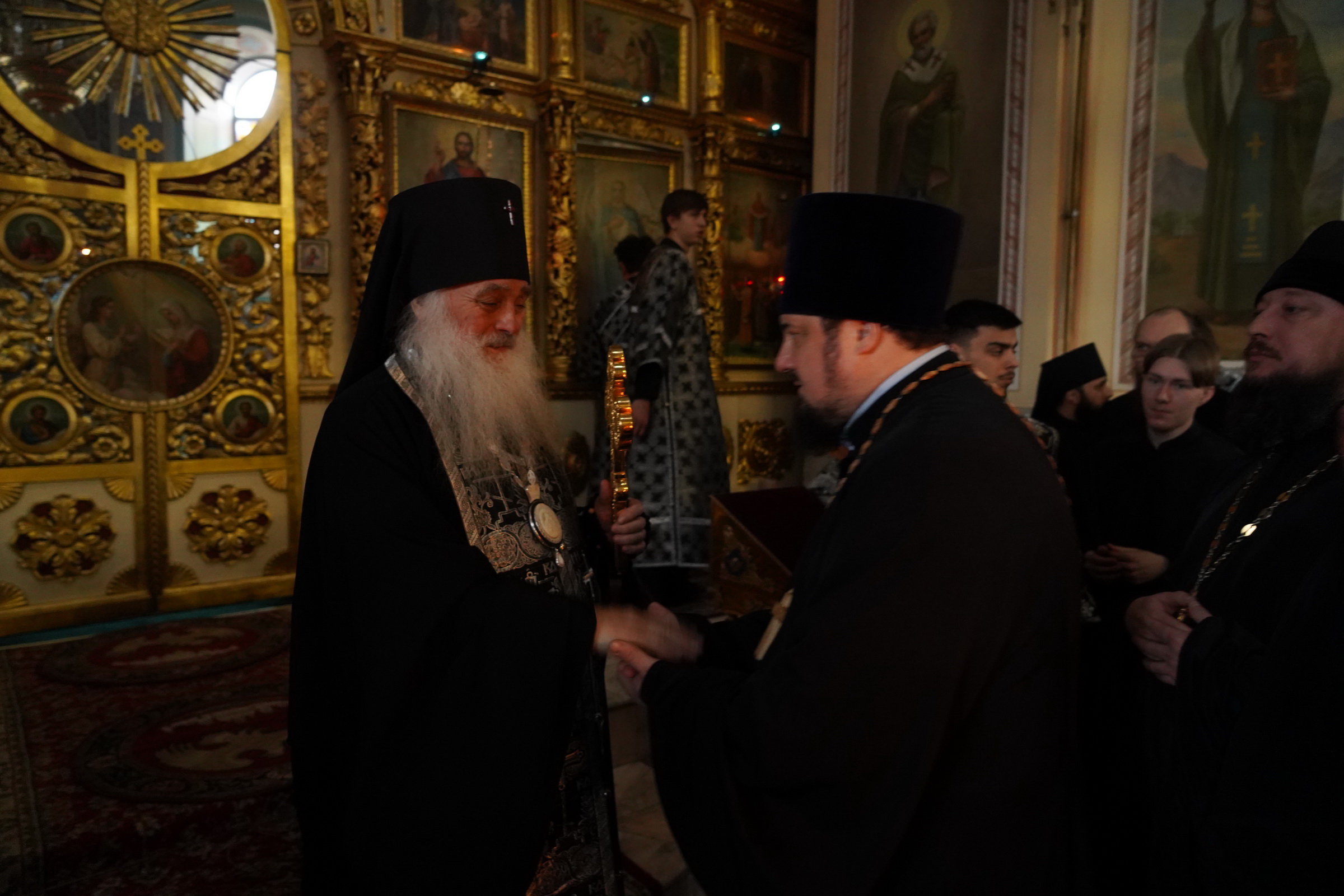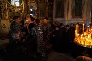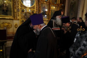 После пения великого прокимна и закрытия Царских врат духовенство переоблачилось в великопостные черные ризы. В конце вечерни была прочитана молитва преподобного Ефрема Сирина «Господи и Владыко живота моего…». Затем владыка прочитал молитвы на начало Великого поста и обратился к участникам богослужения с архипастырским словом и коленопреклоненно испросил у духовенства и всей паствы прощения. После чего был совершен чин прощения, во время которого архипастырь и духовенство, согласно благочестивой традиции, испросили прощения друг у друга и у народа.