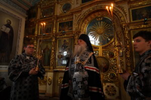 Вечером 22 февраля, в Неделю сыропустную, воспоминание Адамова изгнания, Прощеное воскресенье, митрополит Барнаульский и Алтайский Сергий совершил вечерню и возглавил чин прощения в Покровском кафедральном соборе города Барнаула.